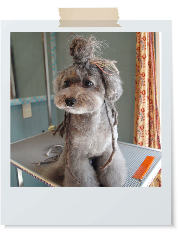 トップのドレッド、耳は長めにキープ。 耳を長く伸ばすことにより女の子らしさが増します。 顔周りも小さく丸くカットしキュートなスタイルにアレンジしました。
