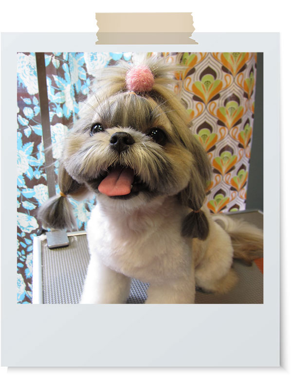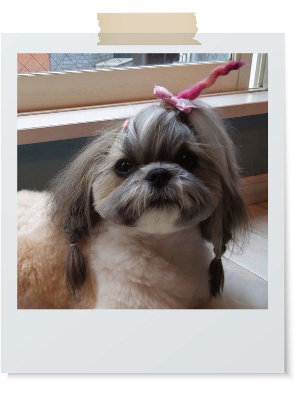 スープ・スプーンのシー・ズーのトリミングの定番スタイルです。 丸いお顔と丸い手足が特徴です。